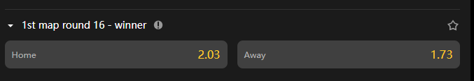 - Away bet wins if Away team wins the round 1 in 1st map.