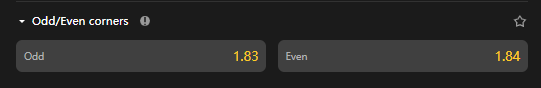 - Odd bet wins if the total number of corners is an odd number(1,3,5,7...).