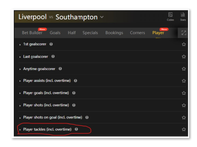 1. select the game, for example Liverpool vs Southampton