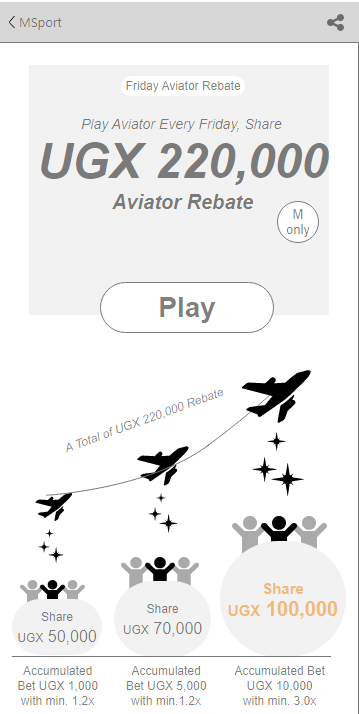 2. Play Aviator game on MSport every Friday, share a total of UGX 220,000 prize pool as bet rebate.