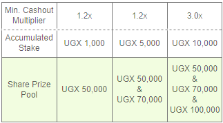 3. Customers meet different requirements can share a prize pool of different amount. Try to meet all requirements and share a total of UGX 220,000 prize pool!